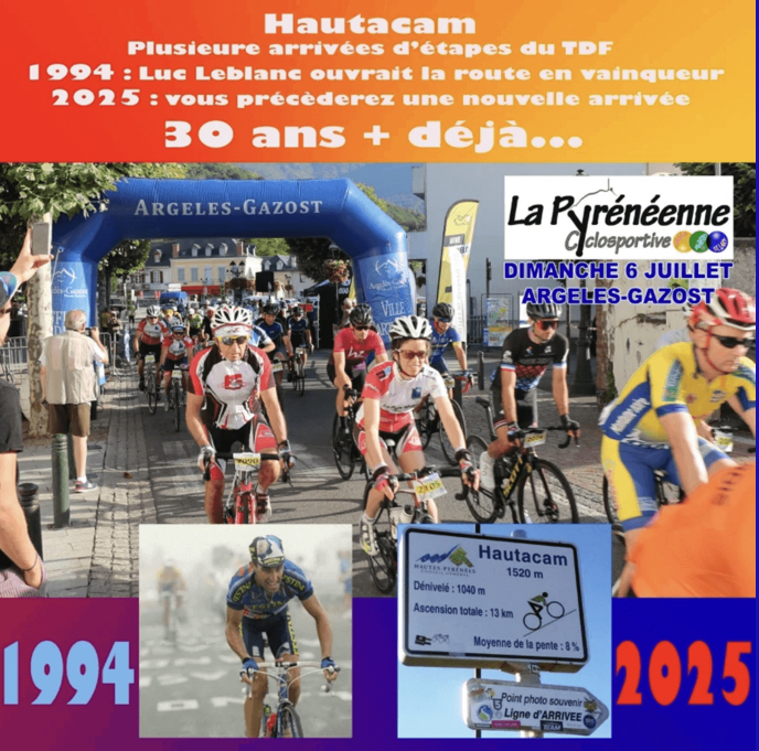 La Pyrénéenne 2025 avec son départ d'Argelès-Gazost dans les Hautes-Pyrénées et son arrivée à Hautacam honorera la première victoire d’étape de Luc Leblanc sur les hauteurs du Hautacam. C’était lors du TDF 1994 et première arrivée également en ces lieux.